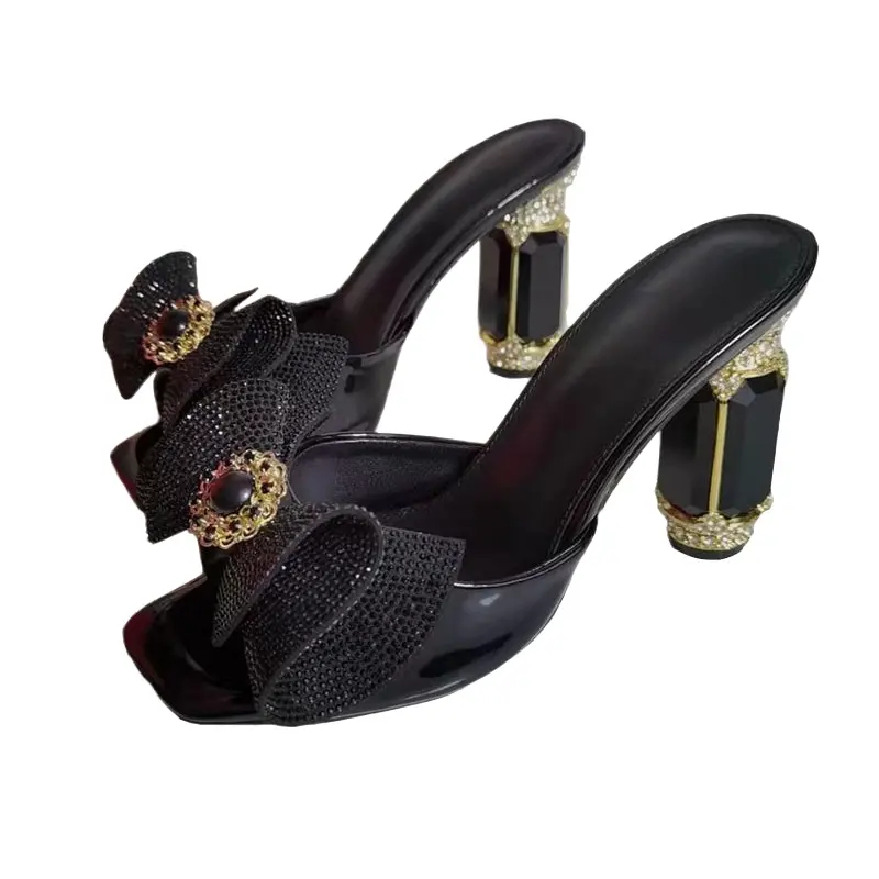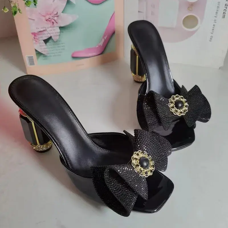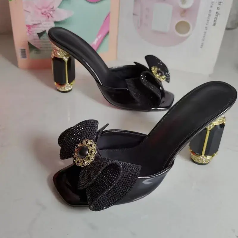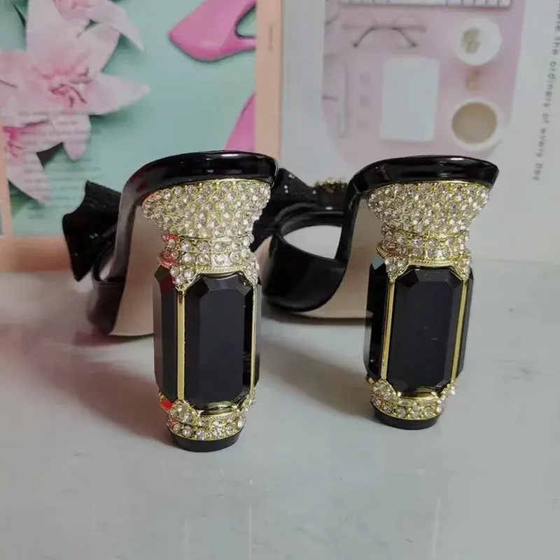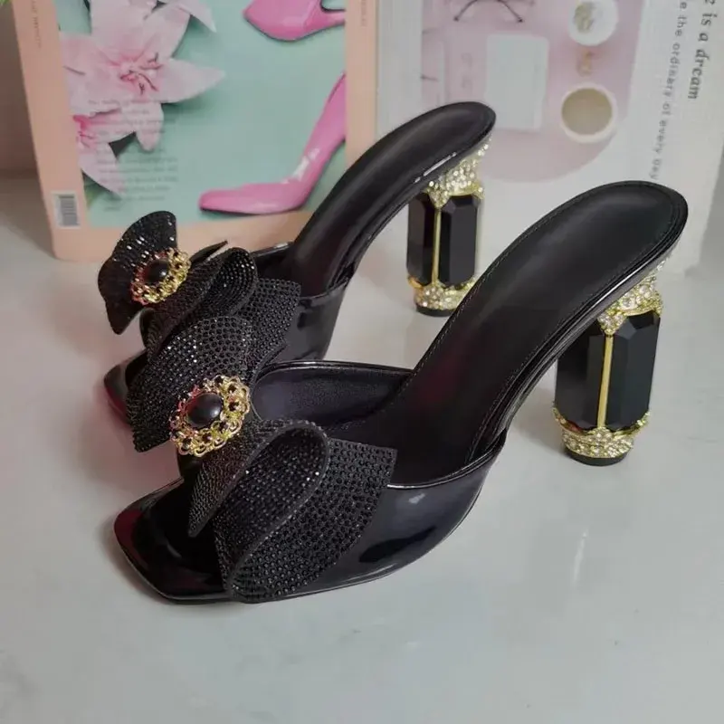 Black Diamond Rhinestone Luxury Fashion Sandals Women Open Toe Butterfly Jewelry High Heel Shoes