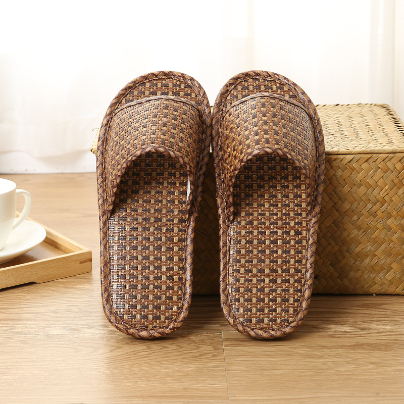 Summer couples stay at home indoor silent woven slippers