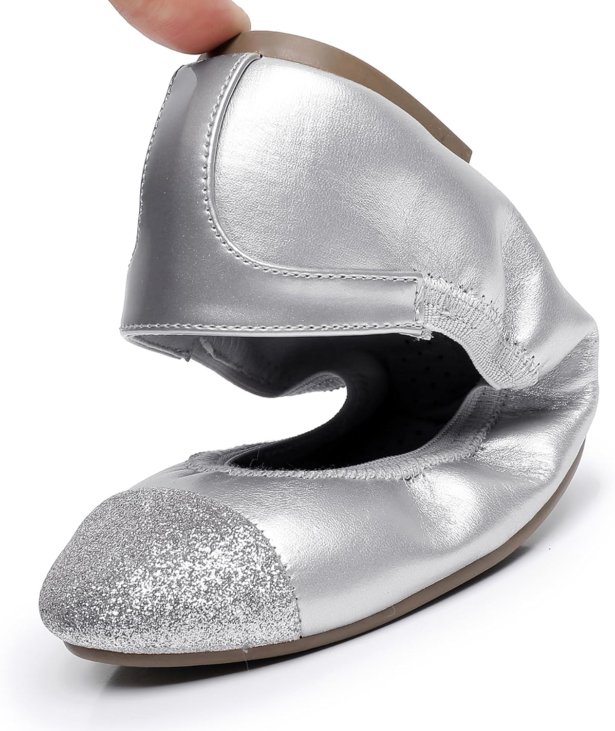 Flexible rubber soles are non-slip, wear-resistant and it also allows for the flats to be folded and stowed in a handbag or purse, perfect for those times you have to wear heels.